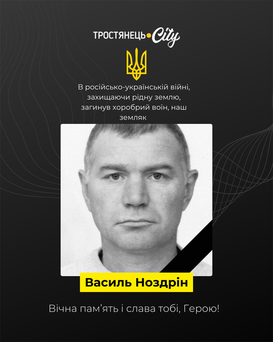 Василь Ноздрін 1982 року народження. Жив у селі Печини Тростянецької громади.